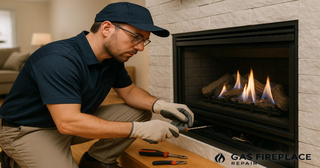 Gas fireplaces, inserts, and logs all acquire different problems with time, particularly if they are ignored. Pilot light malfunction, malfunctioning thermocouples, blocked burners, and unstable gas flow are the most common issues. Other problems include leaking gas lines, damaged blowers, or clogged air vents. A gas log fireplace repair is required if the flame gets uneven or produces soot because of imbalanced air-to-gas ratios. In other situations, fireplaces won’t light because of contaminated electrodes or defective ignition switches. Experts providing fireplace gas leak repair check for leaking gas with accurate instruments in order to avoid dangerous leaks. For fan systems or air distribution systems, gas fireplace blower repair provides uniform heat flow throughout the room. Regular cleaning, mechanical maintenance, and tune-ups eliminate these problems before they become significant repair issues.